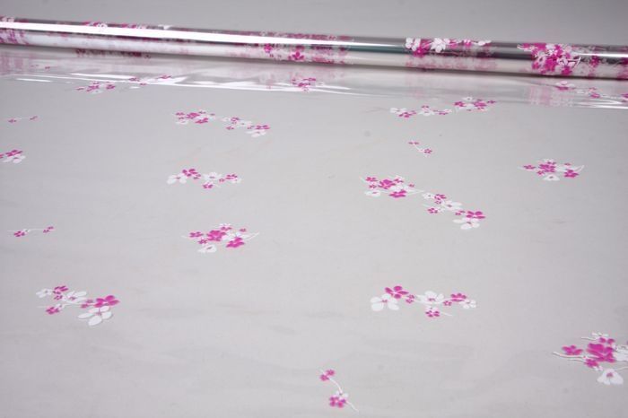 Ролик 70см х8м пленка полипропилен с рисунком Анютины глазки бело-фуксия 1/10 оптом и в розницу в Екатеринбурге, цены в каталоге с доставкой
