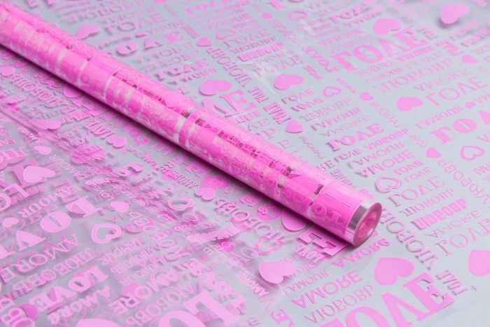 Ролик 70см х8м пленка полипропилен с рисунком Love розовый 1/10 оптом и в розницу в Екатеринбурге, цены в каталоге с доставкой