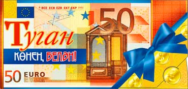 Конверт для денег 16,5х8см С днем рождения. на тат языке 10/10 оптом и в розницу в Екатеринбурге, цены в каталоге с доставкой