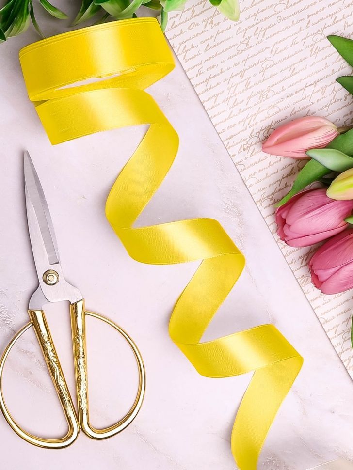 Лента атласная 10мм 25м лимонная 1/10 оптом и в розницу в Екатеринбурге, цены в каталоге с доставкой