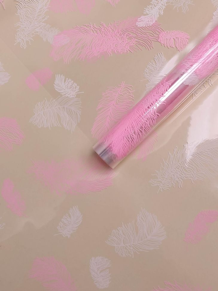 Ролик 60см х 8,5м пленка полипропилен Перышки белый/розовый 1/10 оптом и в розницу в Екатеринбурге, цены в каталоге с доставкой