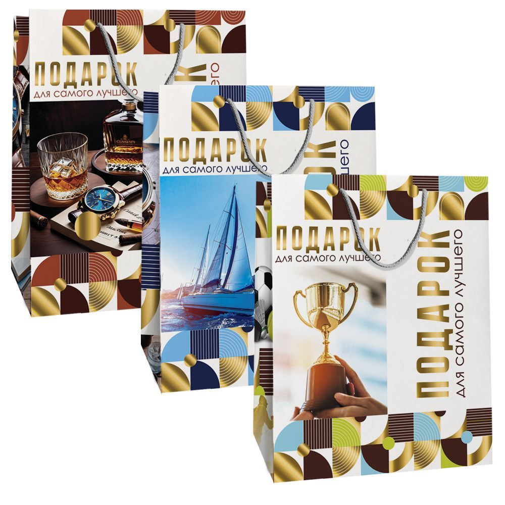 Пакет подарочный бумажный (26,4х32,7x13,6) ламинир мужской микс3 1/12/240 оптом и в розницу в Екатеринбурге, цены в каталоге с доставкой