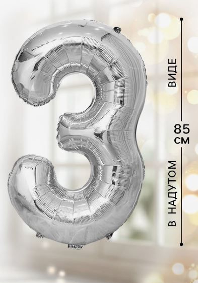 Шар фольгированный Цифра 3 85см цвет серебро 1/20/500 оптом и в розницу в Екатеринбурге, цены в каталоге с доставкой