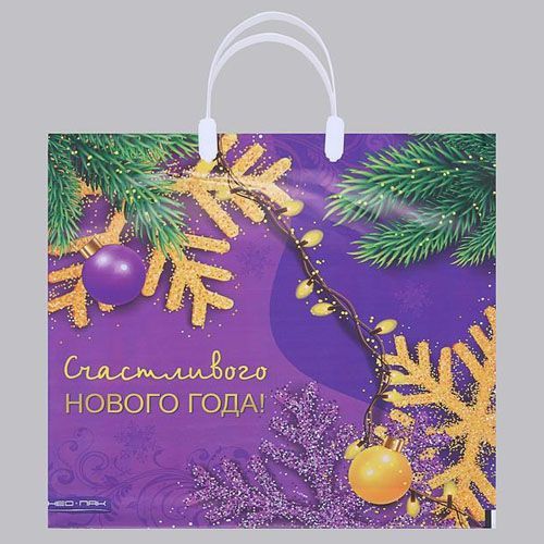 НГ Пакет с пластмассовыми ручками (37х35)-90 Новогодняя фантазия Нео-Пак 5/100 купить оптом и в розницу в Екатеринбурге с доставкой недорого