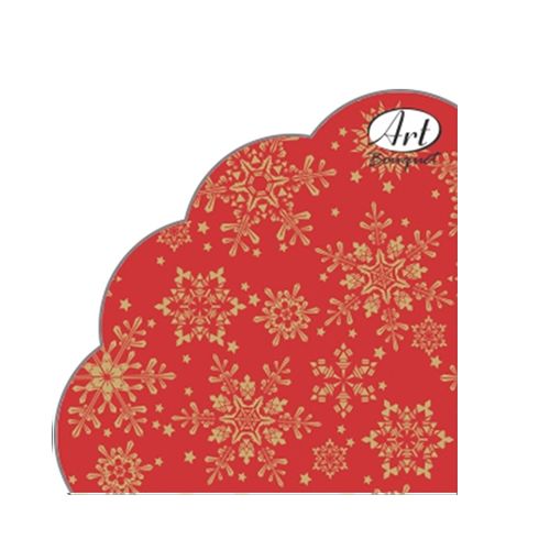 —НГ Салфетки 3-сл d 32 см Rondo Золотые снежинки на красном (12) 1/15